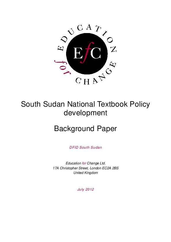 Pdf South Sudan National Textbook Policy Development Background Paper Sarrah Elsayed Academia Edu